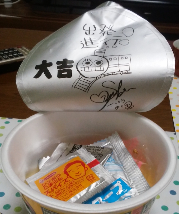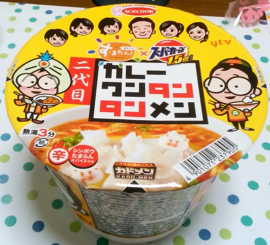 カレーワンタンタン麺うまし! 朝のニュースは関西ローカルの「す・またん」をよく見ています。ゆるい感じの雰囲気と辛坊さんの分かりやすい解説が朝には心地いです。 番組コラボ企画第二弾!ちなみに第一弾は買えませんでしたが^^;今回は発売2日目にゲット! 蓋の裏のおみくじでほっこりさせられます。味は率直にカレーのスパイスとタンタン麺の甘辛さがとても良くマッチしておりました。ちなみにレトルトカレーで言えば、中辛を食べる私の舌では、辛坊たまらんスパイスは少しだけで十分でした。 [0回]PR