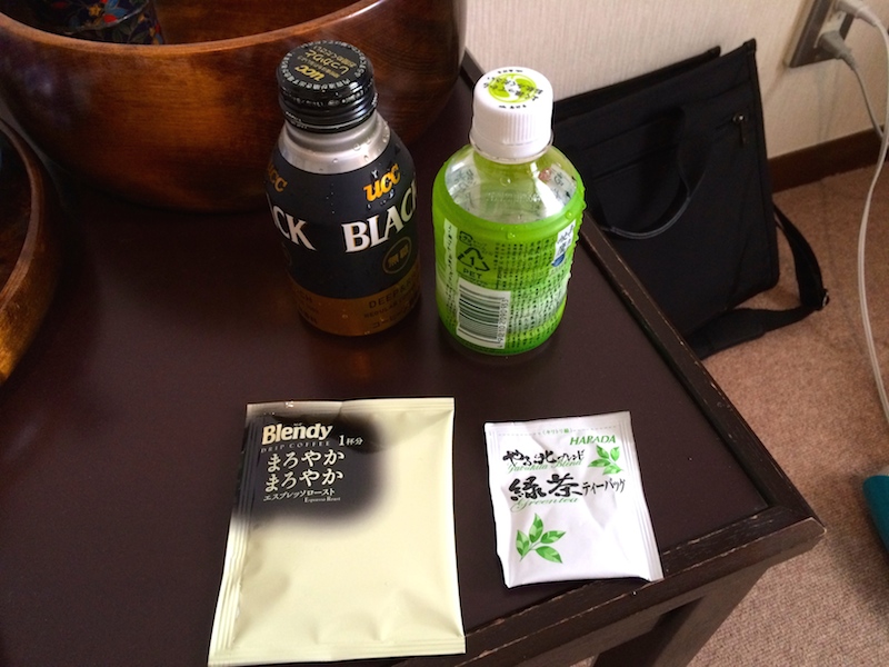 予め、購入したドリップコーヒーと宿泊施設にあるお茶を、ボトルに入れ一日の水分をまか