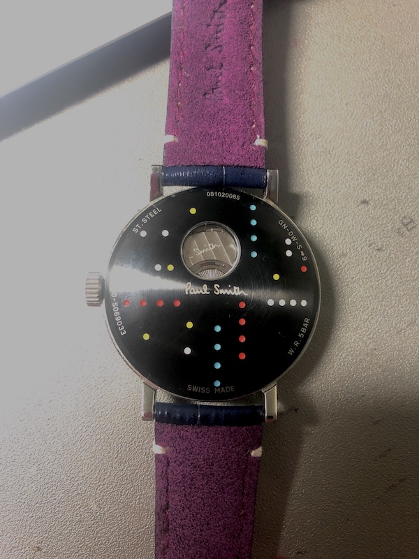 時計ベルト交換 ポールスミス 時計の皮ベルトは消耗品!たまにしか着けなくとも7年経てばそれなりにへたってきます。 ↑写真はまだ新しい時のものです赤ベルトは合わせる服やシーンを選ぶことがあり30代も後半になったことあり落ち着いたものをと今回ネットで購入するに至りました。 もともとシンプルなデザインなので、ザ・腕時計みたいになり、さらには見慣れてないこともあり最初は違和感を感じましたが使うシーンを選ぶ扱いにくさから解放され満足です。 今回買ったベルトは他のポールスミスの時計のもので裏は紫色、らしさが出ています。 [0回]