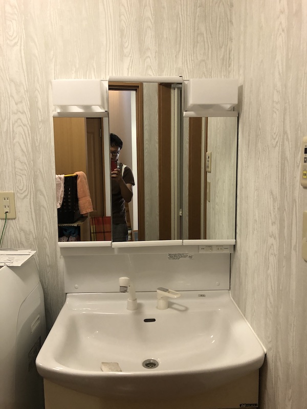 DIY 洗面台...の上! お盆は実家 実家も築17年が過ぎ少しづつ壊れる箇所が出てきました。画像では分かりづらいですが洗面台の上部に関して、鏡の痛みやプラスチックの割れが出てシールをはって目立たなくしています。ちなみに洗面台自体はまだ綺麗。業者に相談したら8万で”全交換”とのことで頭を痛めていたとのこと上だけでも売っているし自分で変えれそうということで母と一緒にホームセンターに行って買ってきました ↑車のトランクにちょうど入る大きさビスを6本打ってポン! 壁の穴にコンセントの差し込みが隠れています。実際15分くらい作業でしたのでDIYとしては微妙かもしれないですが、大きいものなのでやった感はあります。母も2万円で済んだとのことで喜んでました。 [0回]