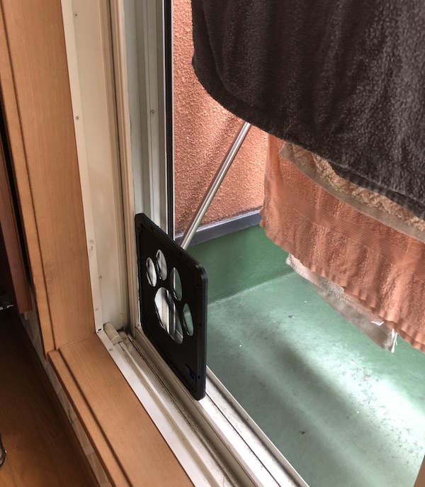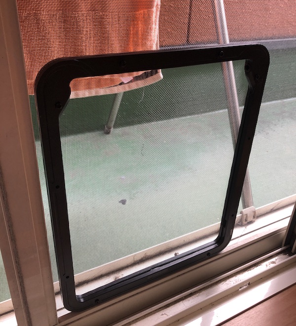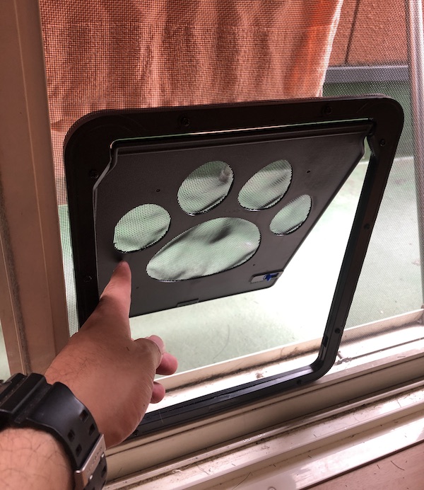 DIY3 ねこゲート 実家でDIYパート3です。実家は元気な猫が三匹おり外に出さない代わりにベランダで気分転換させています月日が経ち、網戸が破れてそこを出入りしていたのですがさすがに虫が入り放題ということで網戸の張替えと(写真とるのわすれました)猫専用のゲートを取り付けました 張り替えた網戸の内と外にフレームを付属のネジで取り付けカッターで内枠の網を切るだけです綺麗に切れないところは糸切りバサミで短くすることで対処しました。 さて、猫ちゃんは気づいて使ってくれるかな(笑) [0回]