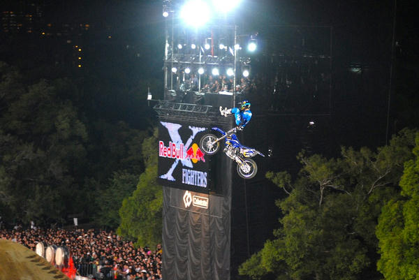 フリースタイルモトクロス in 大阪城!! 歴史遺産である大阪城での開催は物議をかもしているようですが、エンターテイメントの街として世界から認知されるという点での「大阪開催」については賛成です^^さて、日本ではやや過激すぎる感のあるXゲームですが、以外とコアなファンは多いようで、チケットは即日完売実際数分で買えなくなりました^^;会場入りしたときは、小雨が降っていましたが本番ではほぼ止んおり、快適に観戦できました。定刻の時間になることにはすっかり日も暮れ計算し尽くされたライトアップにテンションも上がって行きます!!った高い!テレビで見るのとは全然違う高さです盛り土の2倍以上は飛んでいます他の観客もびっくりして大きな歓声を上げていました。本当に華麗ですあんな危険な事してるのに失敗しないもんです。観戦席の都合で選手のジャンプと天守閣が重なった写真が撮れないのが残念!次回はVIP席に行きたい(予算オーバーですが)Xゲームの魅力は何と言ってもエンターテイメント性が高いこと選手が会話をしお互いの勇士を讃え合っています!テレビの通りだ(笑)演技の後、外国人選手が手をあわせてお辞儀したり、関取の真似をしたりして観客を盛り上げています(笑)いやー、本当に楽しかったです。この記事を書いていて昨夜の興奮が蘇ってきました^^/今回の相棒(カメラ)はニコンのD200 × 高性能望遠レンズお義父様の大切な遺産であるカメラを頂きましたカメラもレンズも僕のEOS KISS × 標準レンズとは全然レベルが違います。今回は、夜のスポーツというかなり難しい撮影条件でしたから、ぶれたりピント合わなかったりとなかなか苦戦しました。プロの方は凄いと思います^^; [0回]PR