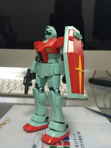 ガンプラ面倒くさがり素人による講座 〜前編〜 価値のあるものは、卓越した技術だけでなく「丁寧さ」「根気強さ」により加えられて行くものですが、素人でも、不器用でも、、カッコよく仕上げたいという方はたくさんおられると思います^^bそこで、おこがましい限りなのですが、僕がガンプラを作る時のちょっとしたアイデアを紹介したいと思います^^題材は「HGUCジム」京都駅近くの家電量販店で500円台で購入♪お手軽なHGUCの中でも、最も簡素なキットかも知れません パーツの外し方ですが、これは説明するまでもないかもしれません。ニッパーで切り離したあと、大雑把には、爪切り綺麗にするには、金属ヤスリを使うといいと思います。 最近のガンプラは色分けされていて組み立てるだけで、設定どおりに再現出来るように進化されていますね!ですが簡素なHGUCグレードのキットは、ワンポイントもしくは、一色だけ塗装して上げることでより良い物になる傾向にあると思います。塗料は近似色のMr.ホビーの116番を使用指定色では無いのですが、すこし赤みがありますが、違和感はありませんでした。はみ出たところは、薄め液をしみ込ませたティッシュか綿棒で拭き取ります。もっと細かいときは、半乾きの時に爪楊枝でこそぎ落とします。※「筆」や「薄め液」など塗料セットをそろえるにはそれなりにコストがかかります。ガンプラを一度しか作らないと考えられておられる方は、しっかり色分けされているMGかRGの方が良いかもしれません。塗料が乾いたら組み立てます。 右の写真は、墨入れ後。水性の筆ペンで溝をなぞり、ティッシュで不要な箇所をしっかりふきとります。これだけで、私自身もかなり満足してしまいウキウキなのですが、ここからがこの講座で紹介したい所です。長くなりましたので、次回紹介したいと思います! [0回]
